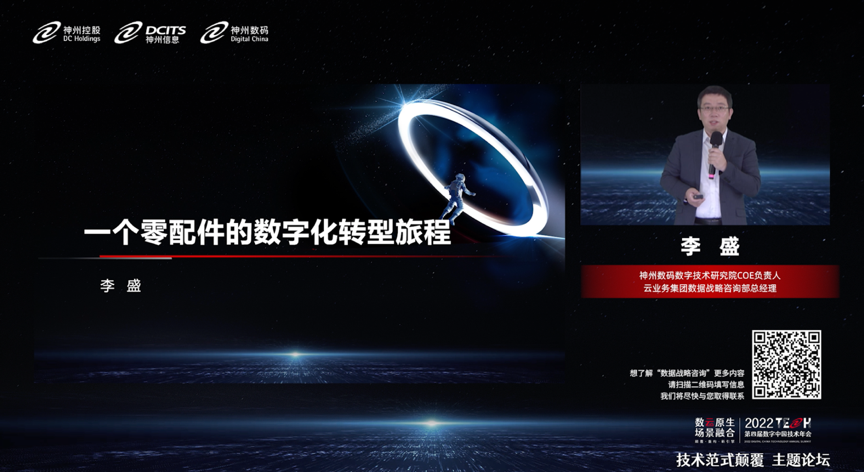 在数据分析领域,星空.xingkong集团数字技术研究院COE负责人、云业务集团数据战略咨询部总经理李盛通过汽车零部件的数字化转型案例,描绘了企业数字化转型历程。他认为,零配件的转型历程是点状创新,而企业真正完成数字化转型需要完成价值链新的范式升级。我们希望通过数云融合,帮助企业完成从微笑曲线1.0到微笑曲线2.0的跃迁,利用云资源的弹性、可扩展性,以及在不同场景的合理分配,满足不同企业、不同成长周期对资源、模型、发布的需求,并在不断迭代中发现新的业务场景,通过数云融合的方式,站在一个更高的角度帮助企业找到最佳的数字化转型路径。