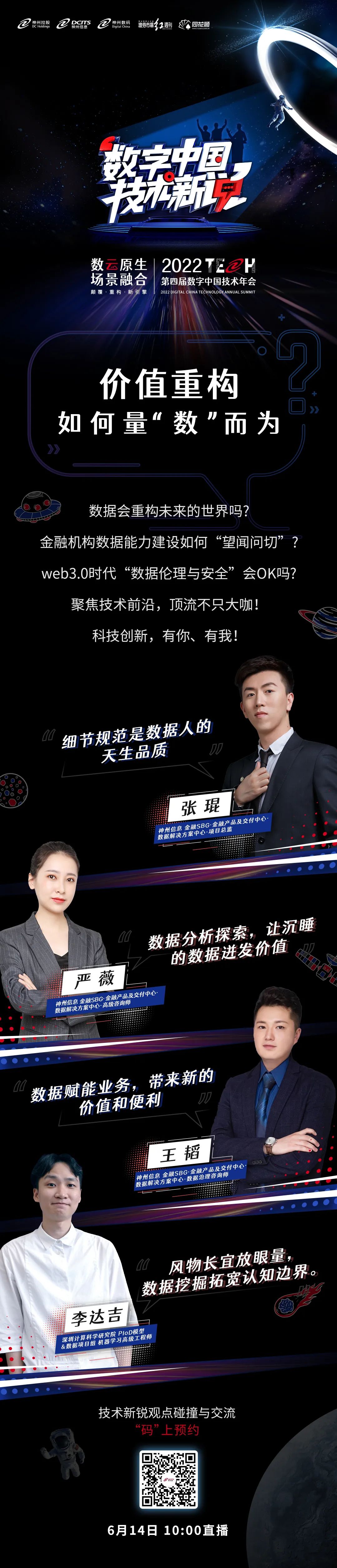 还有两周,复赛即将结束,各位选手可能正如火如荼地准备着他们的参赛作品。为了帮助大家加深对赛道的理解,打破思维瓶颈,我们特别邀请神州信息多位青年技术专家,6月14、15日连续两天上午10点,围绕“新引擎·场景金融”“价值重构”话题进行探讨讲解,涵盖本次赛事相关的场景金融、金融营销模型、风险识别、区块链、数据挖掘、数据分析等多项热点技术,开启场外限时支援!
