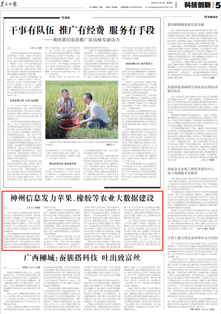 近日记者获悉,神州信息近期新签约了国家级农业项目“天然橡胶全产业链大数据试点项目”以及“烟台苹果大数据中心项目”。这是继承建国家级苹果大数据中心、茶叶全产业链大数据中心之后,神州信息再一次发力农业全产业链数字化建设,助推金融下乡,赋能农业高质量发展。